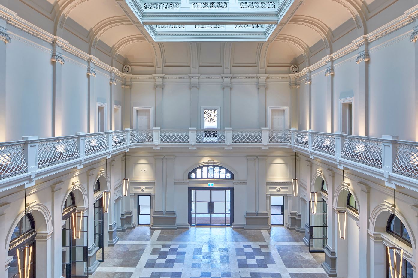 The hotel was designed by Singapore-based Australian architect Kerry Hill, whose previous projects have included Ogilvie House, Queensland, and the State Theatre Centre of Western Australia. Ninety-five per cent of the original heritage building has been returned to its 19th-century origins, featuring re-installed dormer windows, rooftop copper trimmings and a stripped facade showing off the original render.