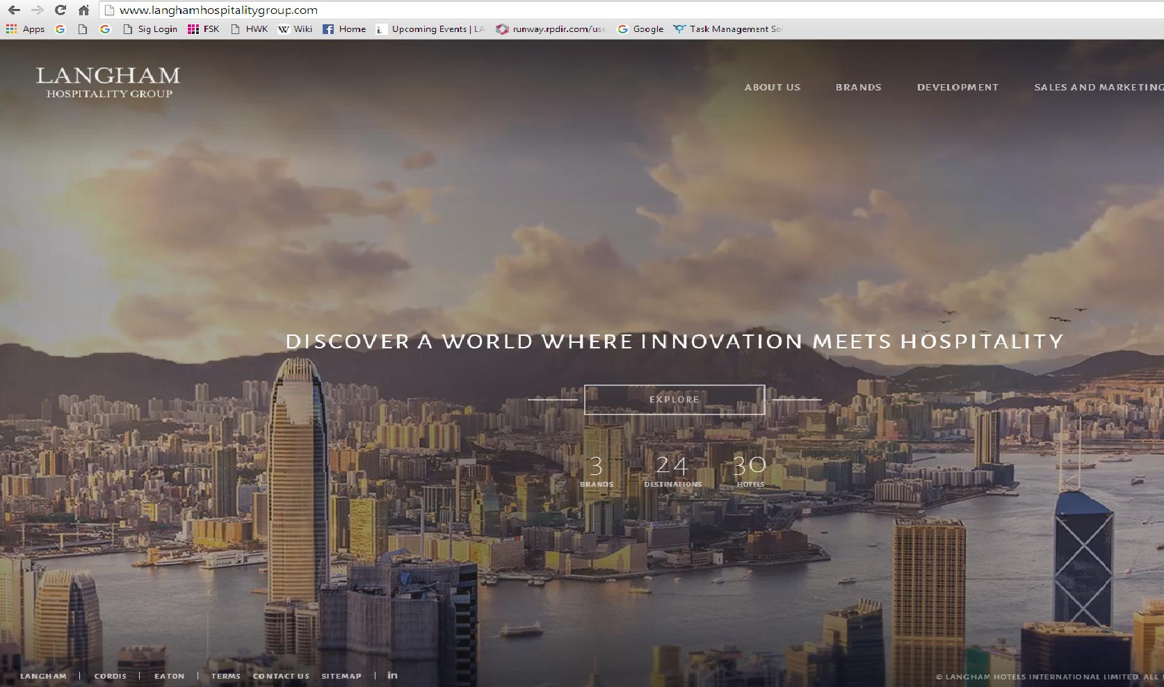 The new corporate website is the latest addition to the group’s other digital platforms launched last year, which includes its luxury brand, Langham Hotels & Resorts (www.langhamhotels.com) and its global upscale brand, Cordis Hotels & Resorts (www.cordishotels.com). The group was awarded GOLD in the 2015 Adrian Awards for digital marketing excellence for the Langham Hotels & Resorts website in the 59th annual Adrian Awards, the largest and most prestigious travel marketing competition globally.