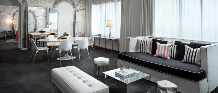 - Phillipe Starck-designed guestrooms that feature a cheeky interpretation of luxury hospitality, as well as the signature W bedding