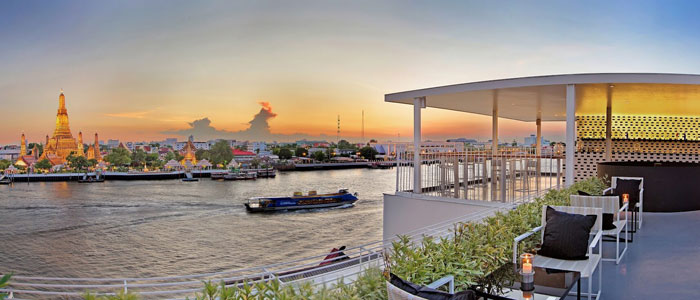 This chic open-air rooftop bar and terrace with views of the Chao Phraya River, Temple of Dawn (Wat arun) and other historical sites. The executive chef, “eclectic Englishman”, Tony Wrigley, ensures fresh and local flavours are in every bite. Beer, cocktails, wines and light snacks 5pm until midnight daily.