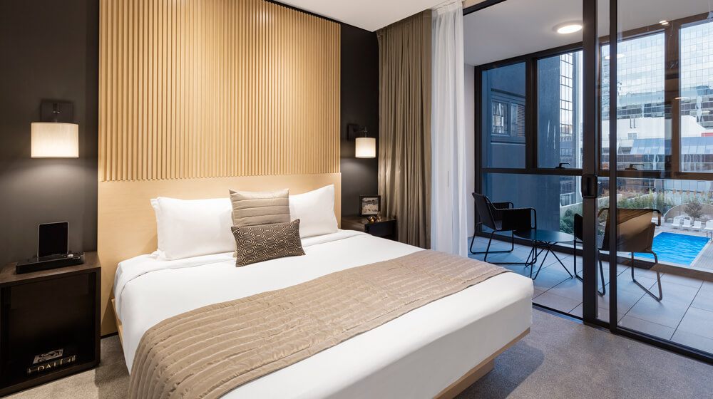 The building itself is an architectural centrepiece for Parramatta, achieved by twin visionaries Allen Jack + Cottier and Koichi Takada Architects. Located less than 300 metres from Parramatta Square and a short walk from Parramatta’s train station and ferry wharf, SKYE Hotel Suites is surrounded by high-end retail and cultural experiences.
