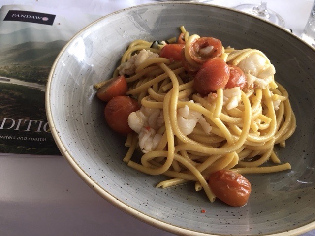 Several small dishes were served as the Primi Piatti. A noteworthy dish was the platter of Woodside goat’s curd with truffle honey and wafer bread (pane carasau). Although there were several choices for the next course, most guests could not resist the saffron-infused pasta with Moreton Bay bugs, cherry tomatoes and lemon oil. A creamy tiramisu made a fitting finale.