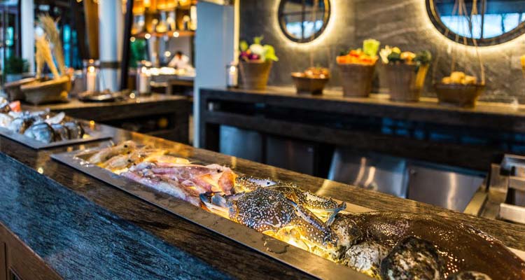 For the main course, live cooking stations will serve up succulent imported meats including marinated French duck breast and Australian black angus tenderloin, as well as Thai and Asian delights, including seared Hokkaido scallops, and grilled rock lobster, tiger prawns, red snapper and squid. In keeping with festive tradition, the carvery will serve roast turkey with stuffing, honey-glazed ham, herb-crusted rack of lamb and English roast beef. Sides, desserts and an international cheeseboard will round off a meal to remember.