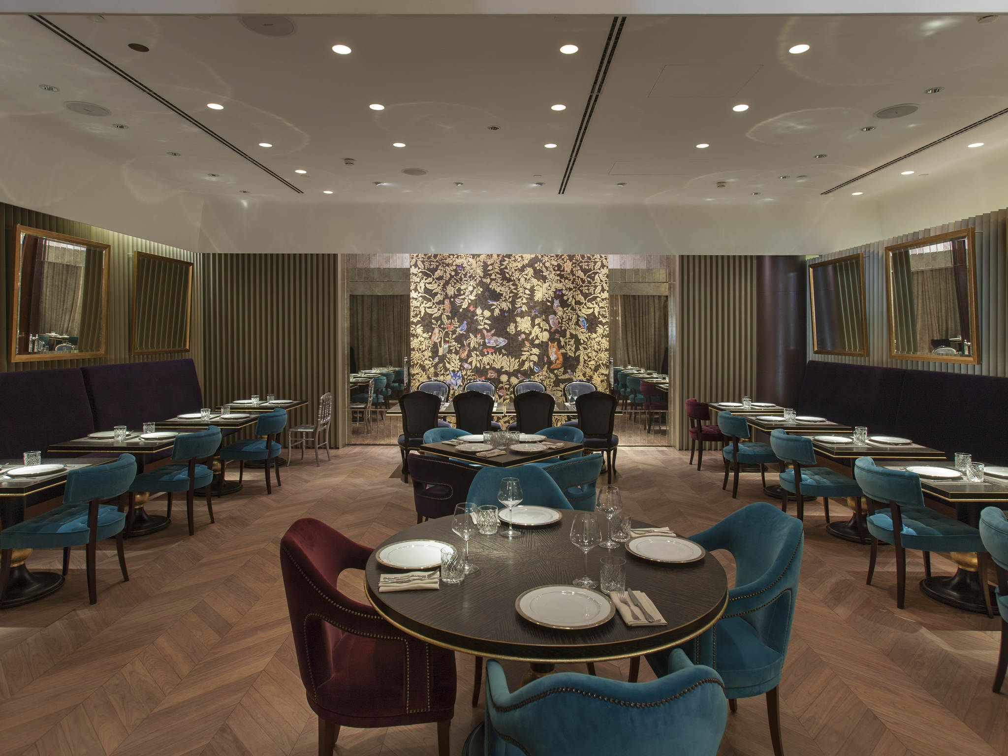 The restaurants and bars of the hotel include Cococo, which offers a fresh take on classic Russian cuisine. The restaurant offers dishes with a synthesis of traditional recipes and flavours, revealed and achieved with unique textures, shapes and combinations. The design of Cococo restaurant, just like its cuisine, is modern yet undeniably Russian: bright, extraordinary, understandable and ironic.