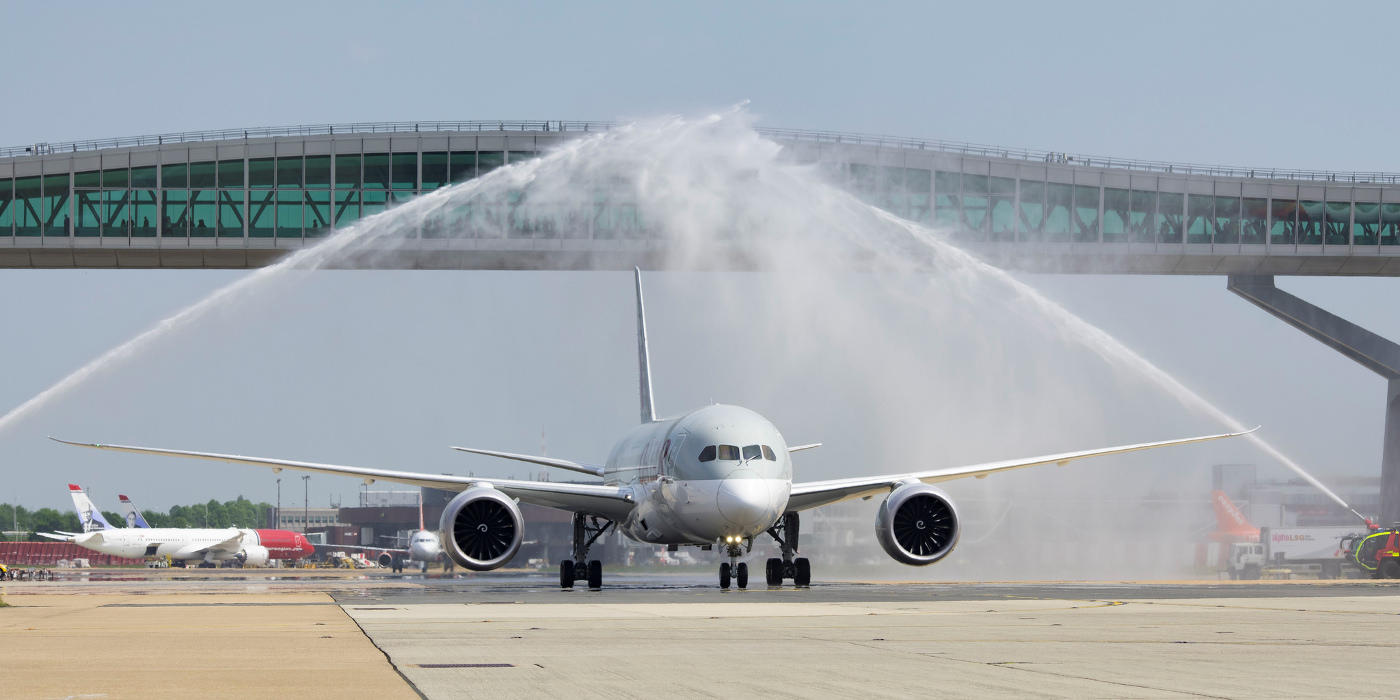 Qatar Airways’ inaugural flight from Doha to London Gatwick touched down this week. The new double-daily service, operated by a Boeing 787 Dreamliner aircraft, makes London Gatwick the airline’s sixth gateway into the United Kingdom and the second gateway to London.