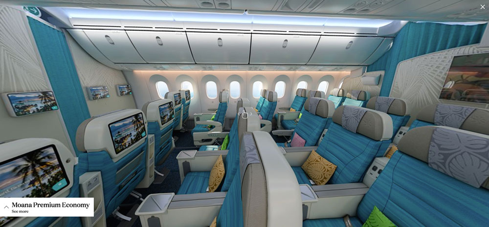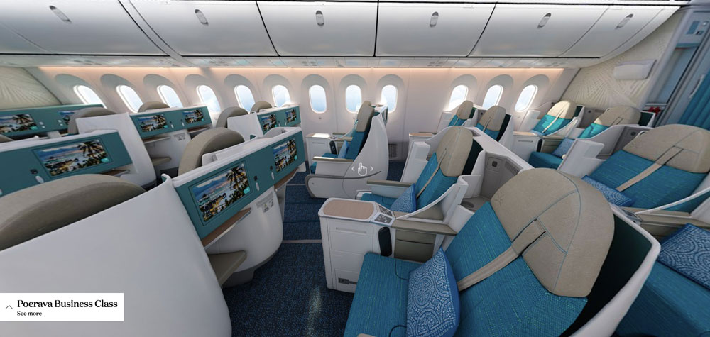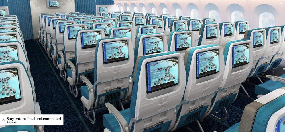 The tahitiandreamliner.airtahitinui.com website features rotatable images of Air Tahiti Nui’s new Poerava Business Class…