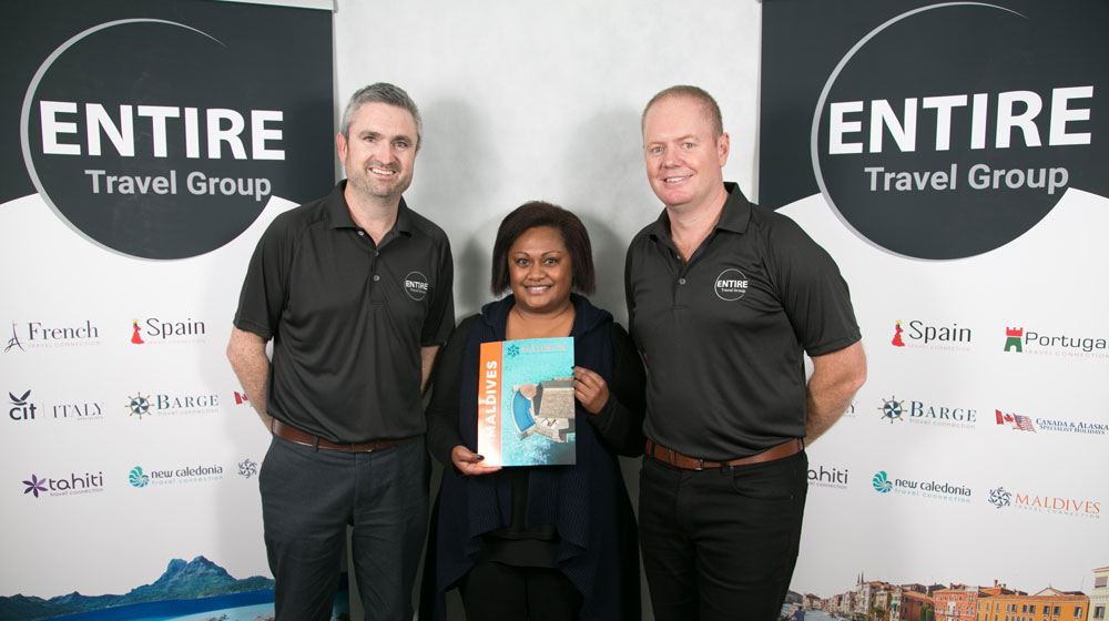 Lead imgae – Entire Travel Group Sales & Marketing Director Greg McCallum, Product Manager Maldives Frances Palfi and CEO Brad McDonnell.