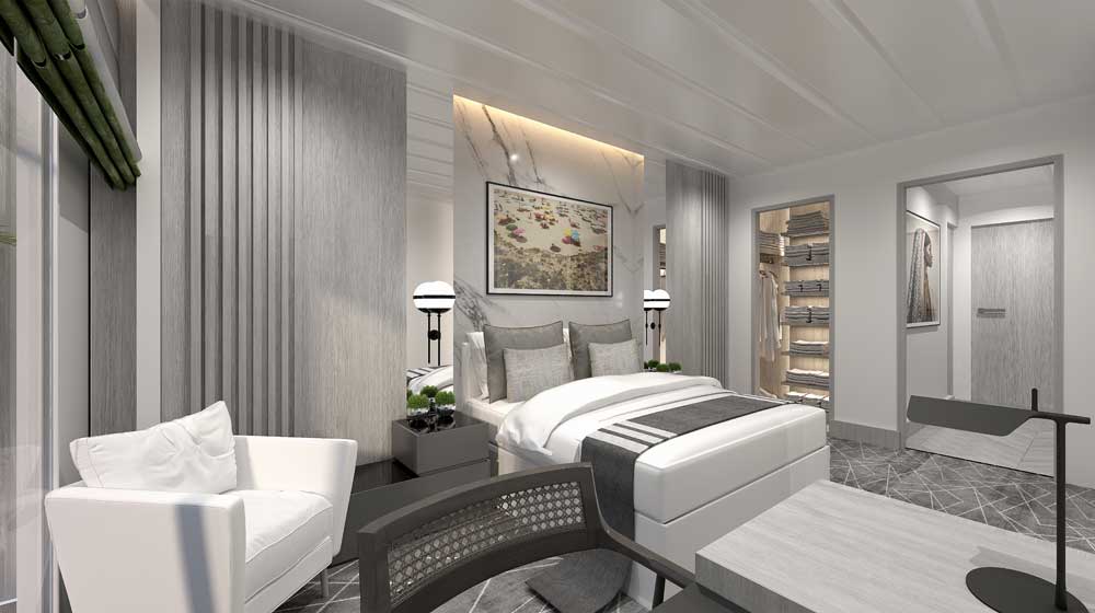 “This was a new and exciting challenge to recreate something stylish and luxurious yet totally different from the accommodations that I have designed for Celebrity Edge,” said Hoppen.