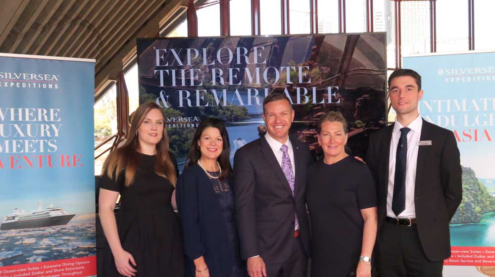 The lead image, pictured at the event from left are: Megan Peterie, Marketing Executive Australia and New Zealand, Silversea Cruises; Leanne Fonagy, Director Marketing, Asia-Pacific, Silversea Cruises; Conrad Combrink, Senior Vice President Strategic Development Expeditions and Experiences, Silversea Cruises; Christine Gardner, Business Development Manager, Silversea Expeditions and Julian Peri Marketing Coordinator, Australia & New Zealand, Silversea Cruises.