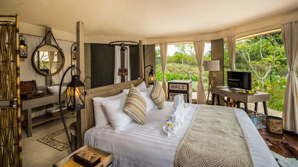 From here, visitors can enjoy a spellbinding vista that extends across a mangrove-entwined coastline to the lowland forests of West Bali National Park, taking in the tiny uninhabited Menjangan Island, the craggy folds of Bali Barat’s north-facing ridges and the towering Mt Raung in East Java. Delicious cuisine, intimate dining and the opportunity to interact with nature can all be enjoyed, supported by excellent service from a team of safari-suited staff. This eco-friendly tented resort – the first of its kind in Bali – is designed to blend with the environment and provide guests with a memorable and exciting close-to-nature ‘glamping’ experience.
