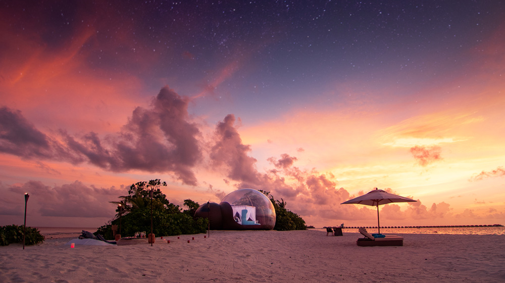 Finolhu’s exclusive ‘Dream Eclipse’ experience costs US$600++ per couple, including one night in the Beach Bubble (sunset to sunrise, from 7pm to 9am), a private beach barbecue and private waterside breakfast at Bubble Beach.