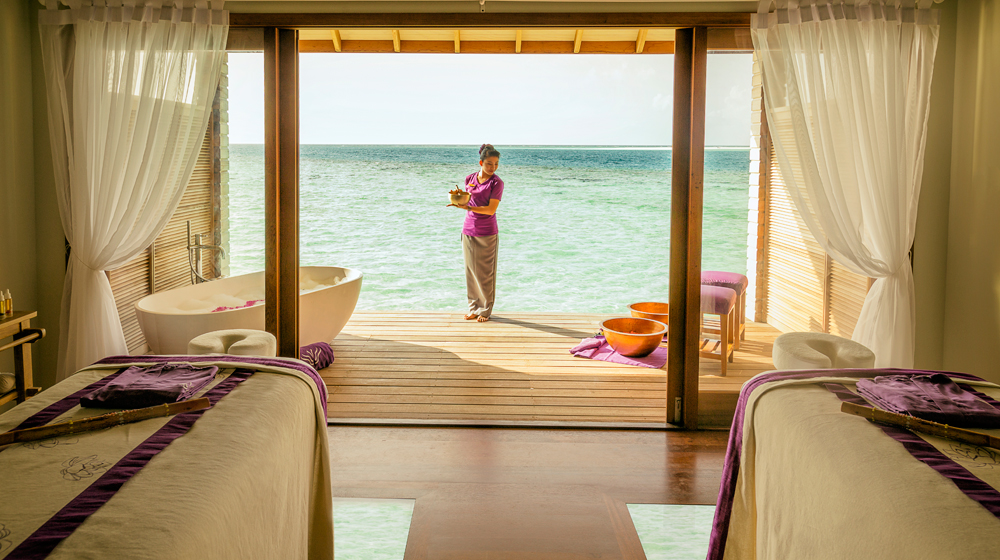 Enjoy a gentle, calming massage using acupressure, skin rolling and relaxing strokes to soothe, restore and calm both the body and the mind. Suspended over the dazzling lagoon on the sunset side of the island, the treatment will take place in a secluded room in a tropical hut built on stilts over the water, where the spa experts invite guests to drift into a state of bliss while listening to the music of the waves beneath.