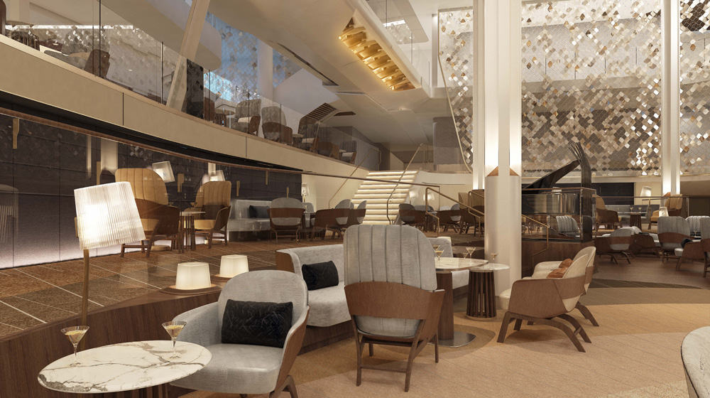 - The Grand Plaza changes according to mood and function. In the morning, guests to enjoy a cappuccino and a croissant at either of the cafes. Guests can return to The Grand Plaza for afternoon tea or to indulge in a pre-dinner cocktail while enjoying unexpected pop-up performances. At nightfall, the energy transforms completely, and the space becomes the social epicentre of the ship, coming alive with live music.