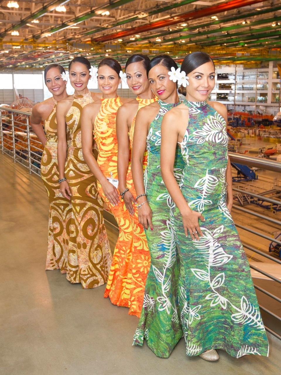 Air Tahiti Nui cabin crew at the Boeing assembly line in Charleston