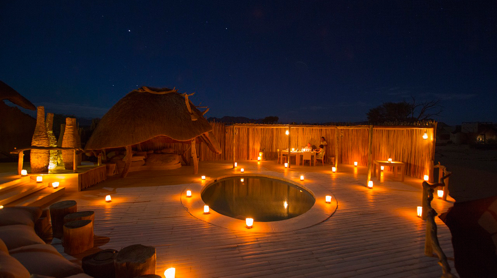 The itinerary includes nine nights at some of Namibia’s most evocative camps including: Little Kulala, the closest luxury camp to the remarkable Sossusvlei Dunes where guests can keep an eye out for ostrich and bat-eared foxes while gliding in a hot-air balloon far above the vast Namib Sand Sea; the award-winning Hoanib Skeleton Coast Camp overlooking the seldom-flowing Hoanib River, offering regular encounters with elephant, lion, giraffe oryx, springbok and even brown hyaena; and Desert Rhino Camp, set in a remote valley deep within the Palmwag Concession, with its uniquely privileged access to endangered desert-adapted black rhino.