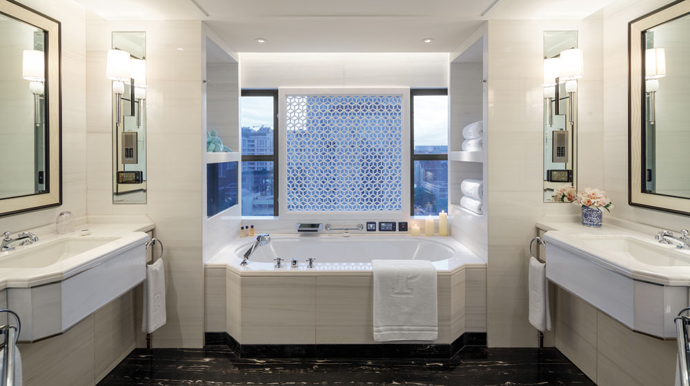 The Peninsula Beijing shows how considerable design spend and the ability to be bold can elevate what was already a stately product. This was always a significant hotel but now, thanks to a total interior redesign by Henry Leung, it is significantly striking, with three floors of super-luxury retail that include a recently opened Jenny Packham, right next to the hotel’s own boutique. I love the way Leung’s designs are sleek and mostly understaded. In all 230 room – the smallest being 60-square-metres – one wall has a floral overlay: a hint of the metallic floribunda that gently dance over some walls in The Peninsula Hong Kong rooms.