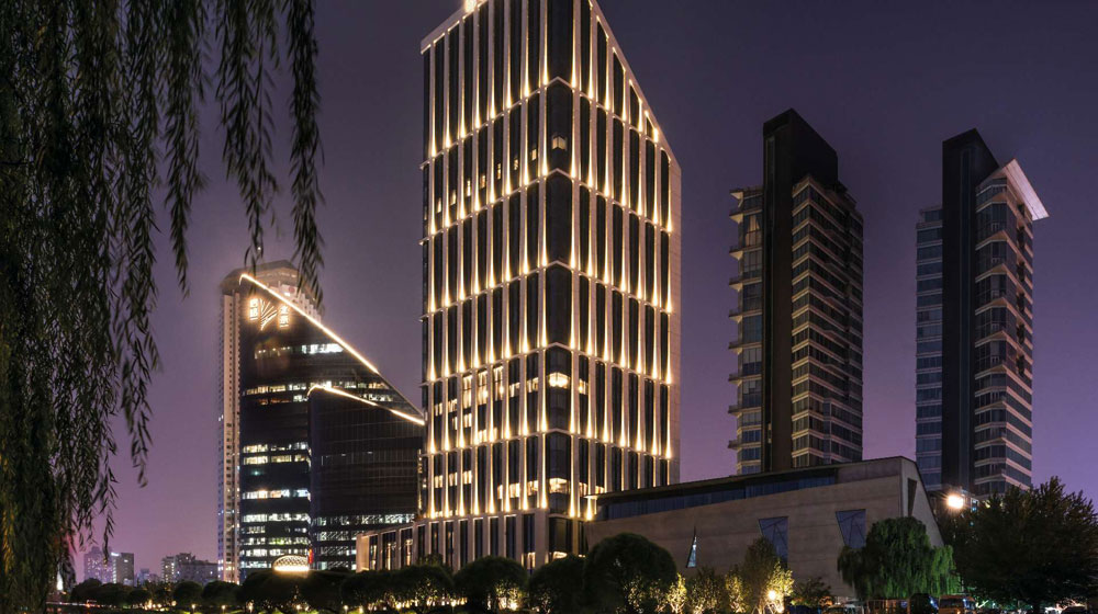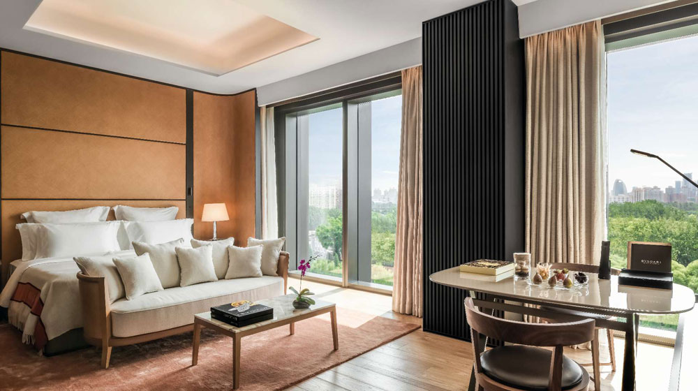 And now it was off to see a totally new building. Bulgari Hotel Beijing is part of a natural vision. Led by Dr Whitney Duan, Genesis Urban Living, on the bank of the Liangma River, is envisaged as a community for tomorrow. Set in a gorgeous park landscaped to illustrate the five flow states of wu wei – play, pause, reflect, exchange, concentrate – the concept is anchored by Genesis’ headquarters, an art gallery designed by Tadao Ando, and the hotel.