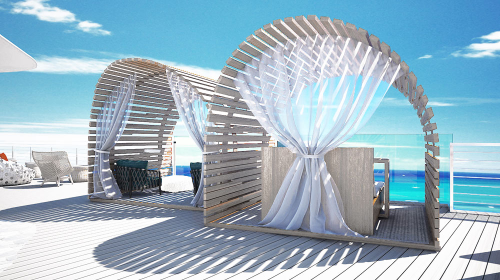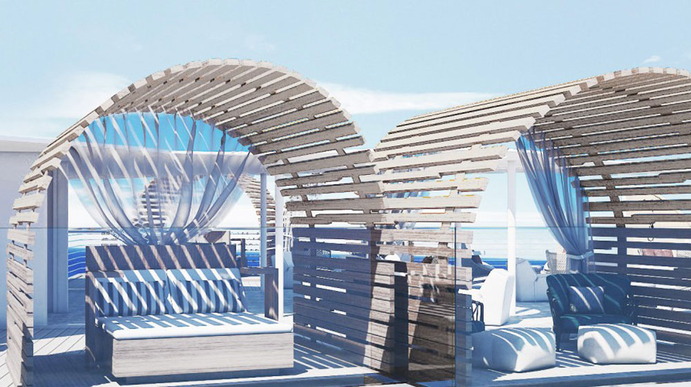 Celebrity Flora, the first ship ever designed specifically for the Galapagos Islands, will provide four guests per night the top deck experience beneath the stars. Cabanas by day will covert to double beds by night.