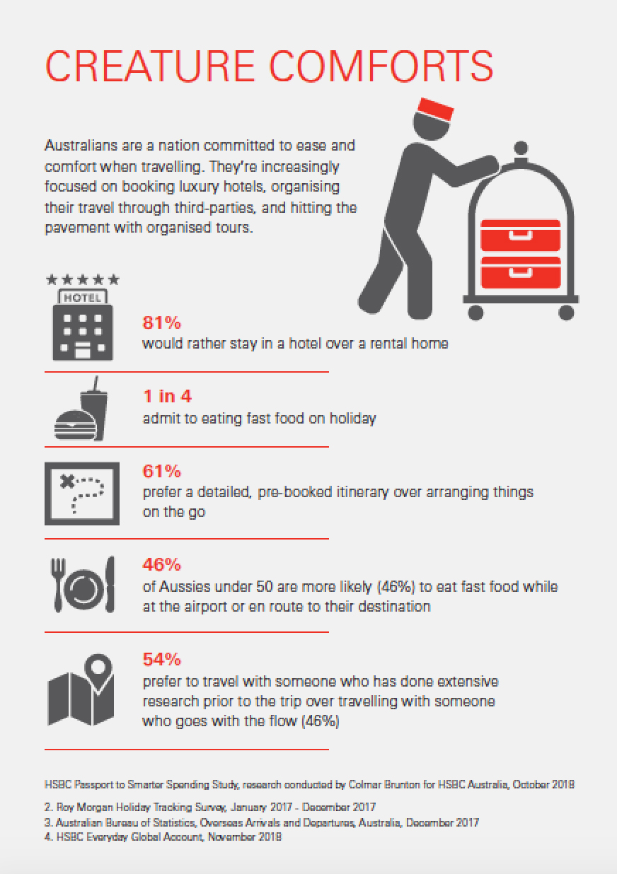 Barnaby Jenkins, Head of Transactional Banking Products at HSBC, said, “Australians want to immerse themselves wherever they travel, however, in reality, they’re much more considered and comfort-seeking, meticulously planning their activities well in advance in order to make the most of their holiday.