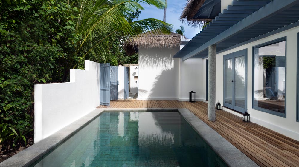 Raffles Maldives Meradhoo is located at the southern end of the Maldives archipelago, near the equator on the Gaafu Alifu Atoll. The resort is accessible by domestic flight, 55 minutes from Male International Airport followed by 15-minute speedboat ride from Kaadedhdhoo Airport.