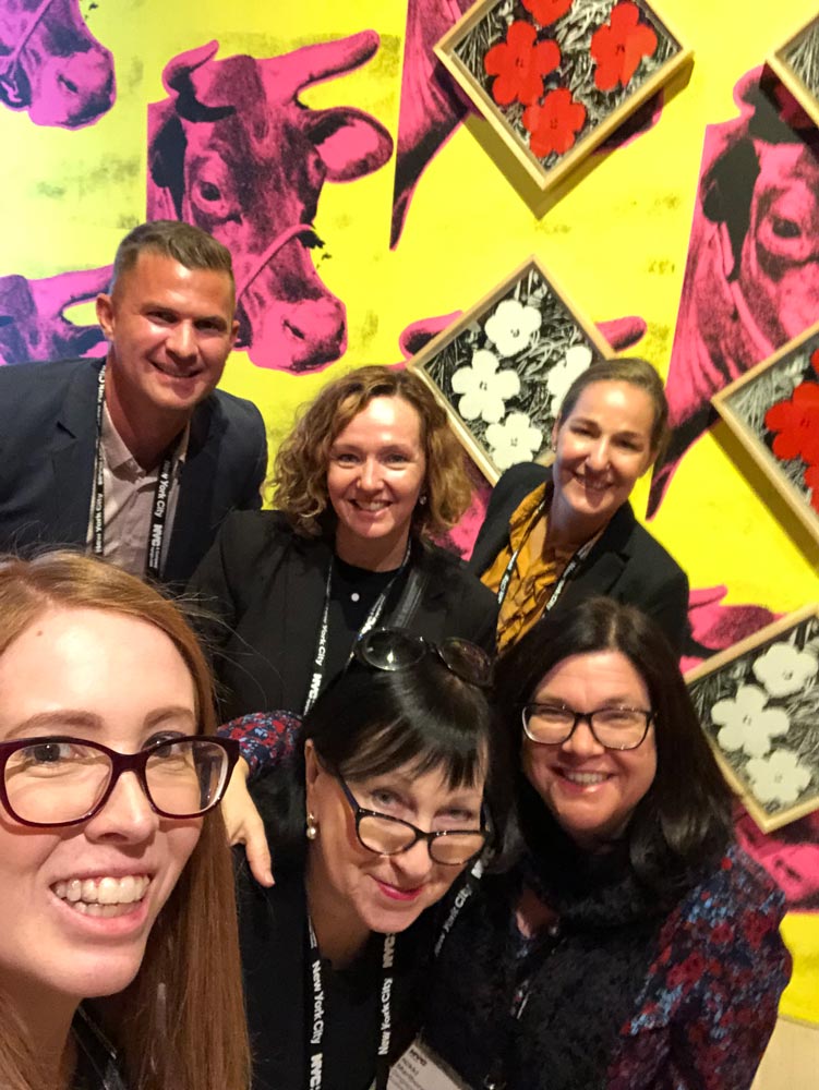 Whitney Museum group shot at new Warhol exhibition (left –right): Philip Smethurst (Bicton Travel), Jodee Sorrell (Globetrotter), Kristin Hellmrich (NYC & Company) Jessica Bennett-Griffiths (Wentworth Travel), Maggie Poynter (Spencer Travel), Nikki Marlborough (Singapore Airlines)