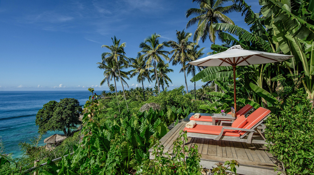 With unobstructed views of the Indian Ocean, a plunge pool, several private bales for dining or spa treatments, bush-cooked meals over an open fire, colourful sunsets and plenty of nearby hiking, Villa Rahasia is a lover’s paradise. Among the thoughtful services included in the packaged rate are:
