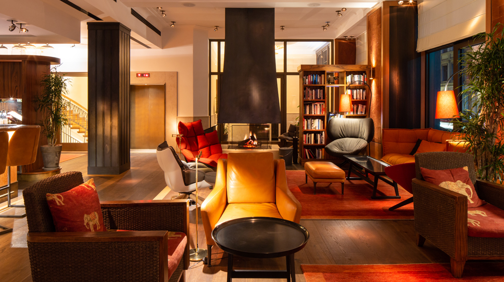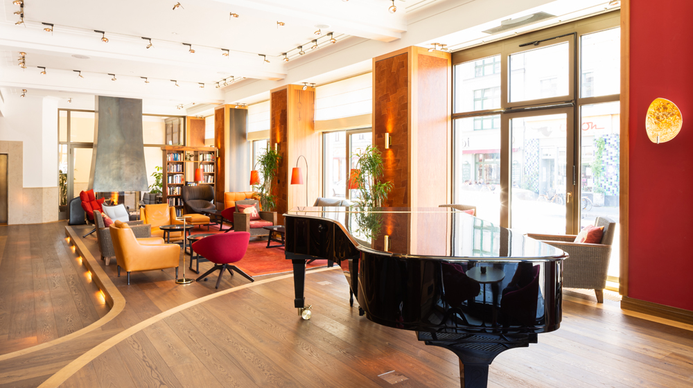 This place oozes culture. Bookcases in the main ground floor area are filled with German hardbacks. A prominent grand piano is a reminder that at least every night there is a serious event, up in fifth-floor salons. I was going out to dinner, but that night there was a Thibault Falk piano recital. To take three days mid-month, 17 March is a Benedikt Jahnel piano evening, 18 March is jazz, and on 19 March there are two consecutive events, a classical hour of soprano and piano, followed by two hours of Declan Forde on the piano. What an admirable benefit not only for hotel guests but also for Berliners who are lucky enough to live nearby.