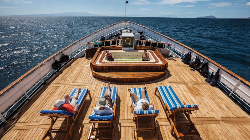 You don’t have to sacrifice comfort and world-class service to discover the Galápagos. The small group size of just 32 aboard the Evolution ensures ample time and attention as you explore. Along with Exodus’ knowledgeable guides, you’ll find yourself inches away from the Galápagos’ famed wildlife above and below the surface of these magical volcanic islands.