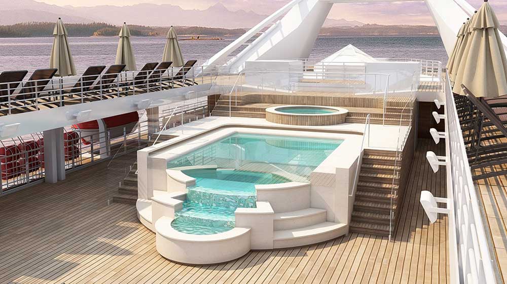 In addition to the new guest suites, all bathrooms in existing suites will be renovated in the same design. An inviting new infinity pool was also revealed, along with a reimagined Veranda restaurant with all new layout and more seating. More news will be announced in the coming months, including two highly anticipated new dining spaces and new dining concepts on board, a world-class spa and fitness center, and enhanced “living room-esque” deck space, where guests will no doubt congregate.