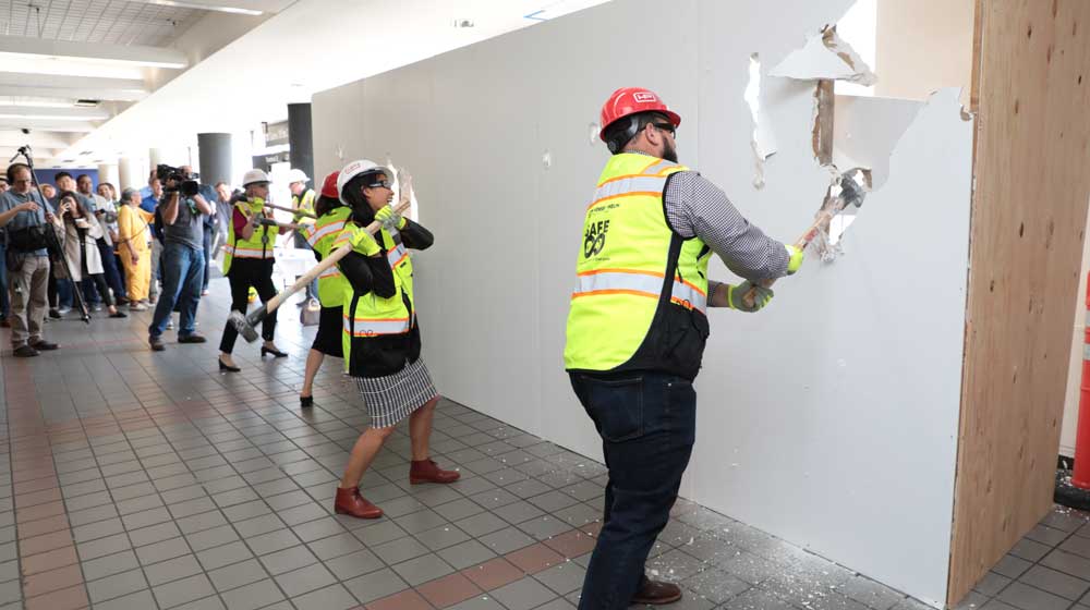 Delta Air Lines employees along with representatives from Los Angeles World Airports (LAWA), contractor Hensel Phelps, and design firms Gensler and Arup gathered for a celebratory event to mark the milestone in the project, which will modernise, upgrade and connect Terminals 2, 3 and the Tom Bradley International Terminal (Terminal B). The event was held in an area of the terminal that is now closed to the public as construction gets underway and included a ceremonial wall demolition. Attendees also signed a steel girder that will be placed in the final facility.