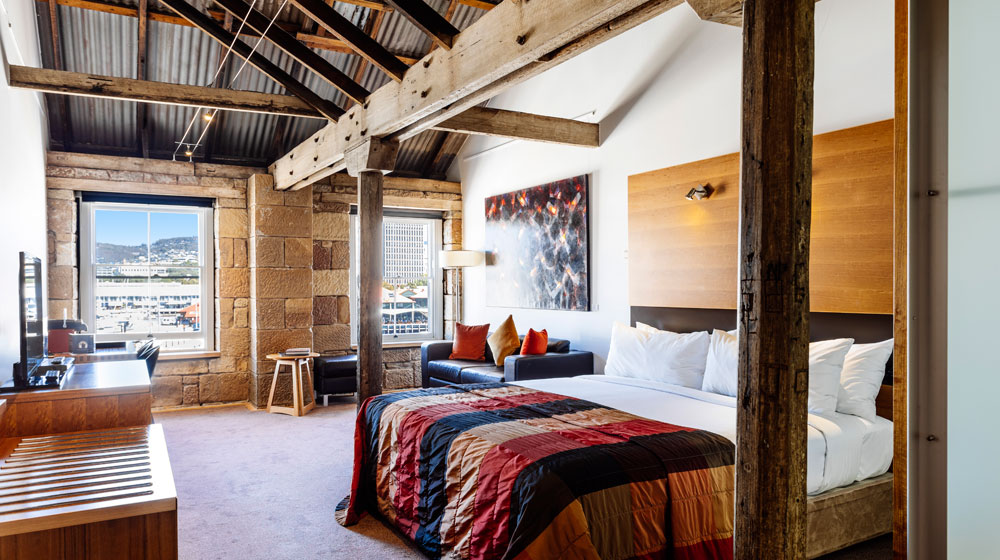 Back in Hobart, I experienced another of Tasmania’s extraordinary hostelries: The Henry Jones Art Hotel. The hotel is another feather in the cap for Federal Group, which also has a new-build MACq 01 hotel opposite. The Henry Jones, as its name implies, is filled with art; 400-plus pieces in all. It was difficult to have a favourite, but I did rather treasure Woods by David Keeling, one of the winners of the annual John Glover Prize for aspiring Tasmanian artists (there are many original John Glovers around the hotel, too).
