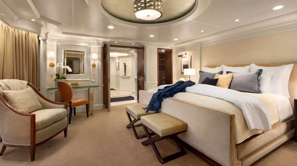 Designed by Los Angeles based Trevor R. Howells Interior Design, the Owner’s Suites reflect Ralph Lauren’s appreciation for sailing, Hollywood glamour and timeless, classical beauty.