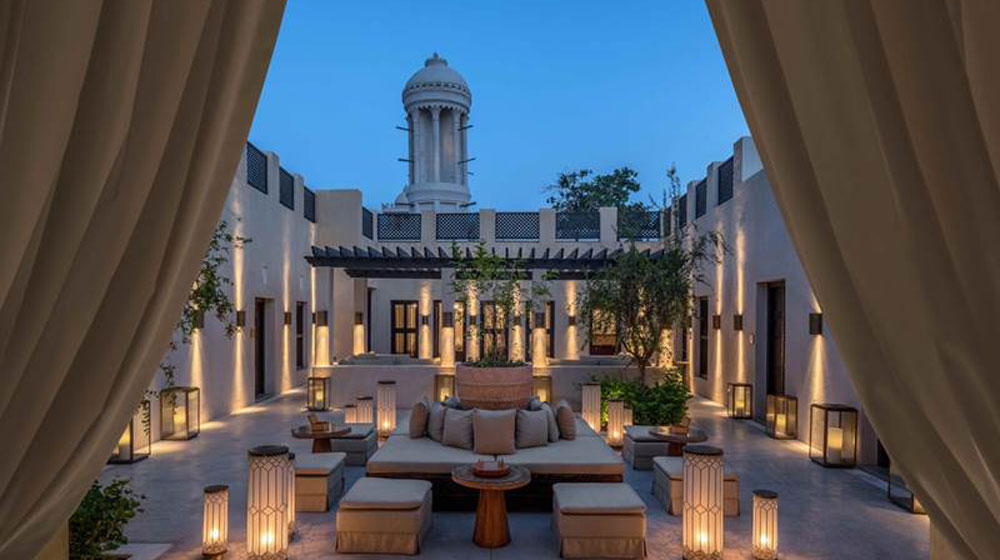 Renowned for the five historic homes at its foundation, the 53-room resort by GHM debuted in marked contrast to the world-famous hotel towers of nearby Dubai, cultivating a low-slung profile and an aesthetic that celebrates indigenous building design and materials. Its historic barjeel, or wind tower, punctuates the district’s age-old appeal.