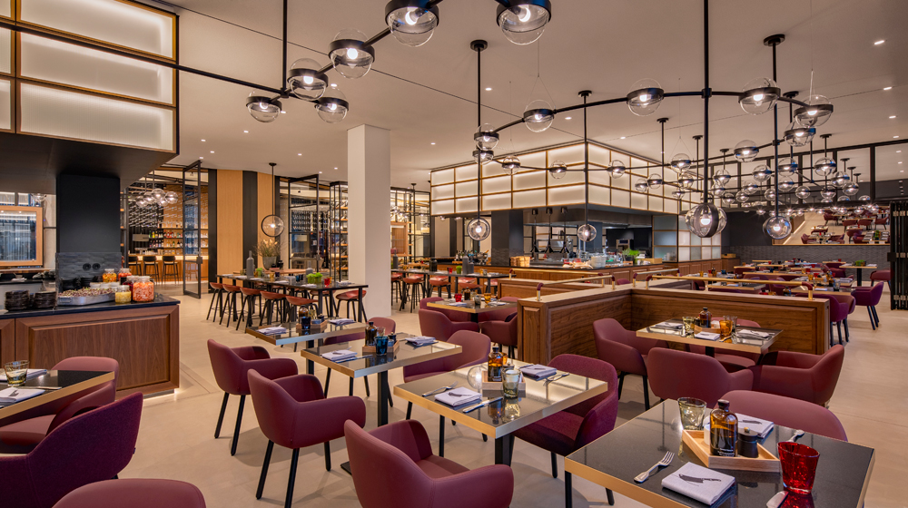 This is a hotel that has two superbly memorable highlights. One is the 13th-floor rooftop bar, M’Uniqo, which moves down 37 steps to the double-height 12th floor to offer indoor socialising to those who prefer it. Rooftop minders start controlling elevator access, down on the ground floor, a couple of minutes before M’Uniqo’s 5 p.m. start, seven days a week. Groups come and go, from post-work through to cocktails, drinks-and-tapas and on to post-prandial socialisers and the midnight crowd. I joined nearly 200 others watching the sunset; I had a Villa Massa Limoncello with Belvedere vodka, which I called Bastian after my date, Bastian Baumann, the hotel’s head of sales and marketing. M’Uniqo is a marketing magnet – at least 20% of hotel guests come up here, he said – and the rooftop experience definitely attracts business, especially at weekends.