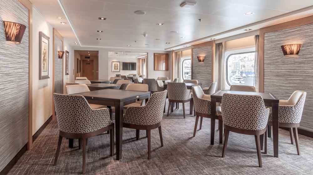 Guest suites have also seen significant updates, with Veranda Suites now showing new stone tops on the bedside cabinet and credenza, joined by a new table, designer bedding soft goods, and sofa pillows. Premium Suites highlight dramatic updates with new furniture and a new colour palate throughout the entire range of top-end accommodations on Seabourn ships that rival the finest hotels in the world.