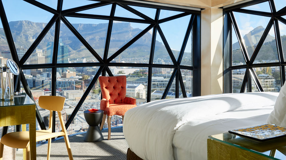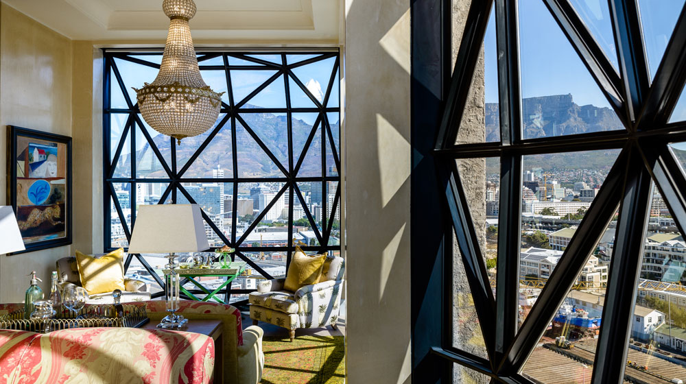 One day I lunched desk side, off a green salad with extra avocado and, of course, I just had to make a G&T from my in-room supplies, namely Pink Lady Cape Town Gin and Fitch&Leedes rose-flavoured pink tonic (I left the pink macaroons). Naturally, afterwards I needed lots of exercise at the two outdoor pools and the 24-hour Technogym. I also did several forced marches up and down the sloping main drive, about 500 metres long: I looked up to Table Mountain one way, and down through the hotel’s ceremonial entrance arch to Company Gardens the other. As I strode I was flanked either side by a guard of honour of the 80 Canary Island date palms planted in 1925 for the visit of HRH The Prince of Wales.A year earlier, in 1924, Cape Town had built a 57-metre-tall silo complex to store grain for transport to Europe, Today, these host Cape Town’s newest hotel. The area is minutely preserved by authorities, but the powerful philanthropic body V&A Waterfront realised that the building would make something truly unique. Thomas Heatherwick, one of the world’s most creative designers, has cut into the silos to make a museum. The integral 11-floor rectangular building, which had to keep its main shape, is now the suitably named The Silo Hotel. At top is a glass-sided swimming pool and – another a few steps up – a glass-sided platform for 360-degree views of Table Mountain, downtown Cape Town and, immediately below, the waterfront.Heatherwick was able to insert sizeable, multi-faceted windows into the hotel area. All 28 rooms are at least six metres high and at night white blinds come down, turning some into what would seem like giant upright coffins were it not for the colour. Each bedroom is unique. Designer Liz Biden, the face of her family’s Royal Portfolio, is exactly the opposite of the ‘school of taupe’ – those designers who work in 50 shades of mushroom. Ms Biden does bold, with a fuchsia closet here, a dayglo lemon sofa there and one-off bespoke artworks that each make a statement.