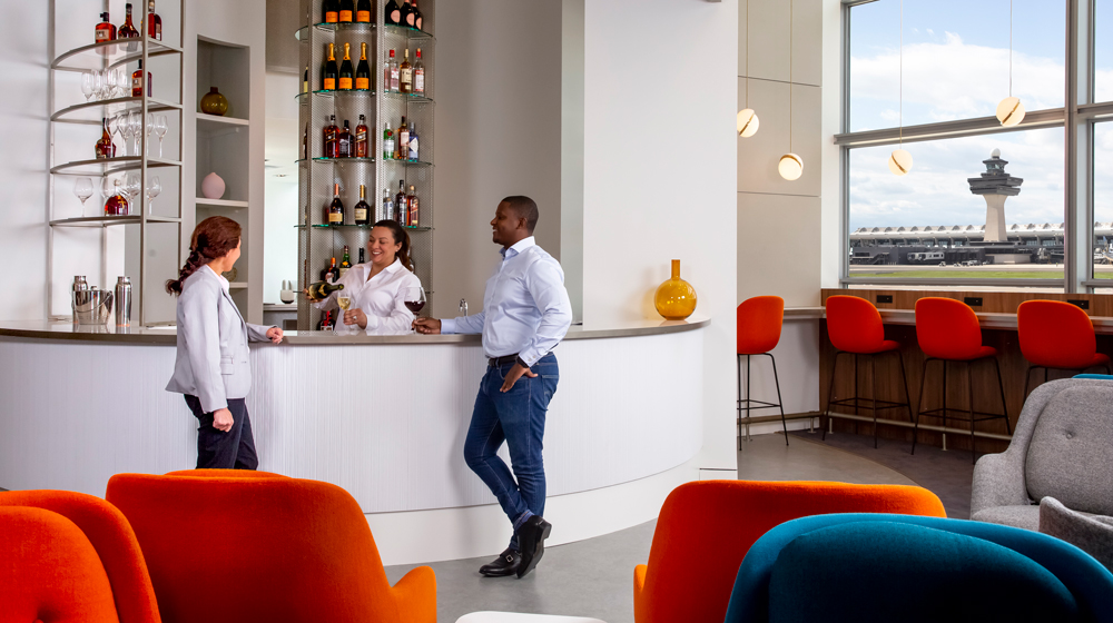 Dressed in a lacquered metal structure and completely open to the lounge, the bar offers a selection of wines, Champagnes and spirits, served by a bartender. For the first time in an Air France lounge, customers can also enjoy cold draught beers.