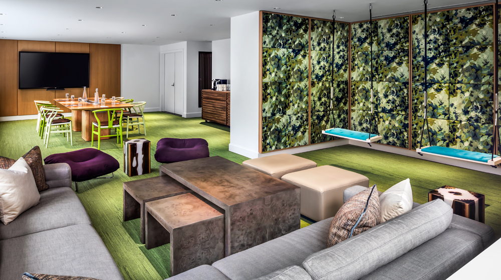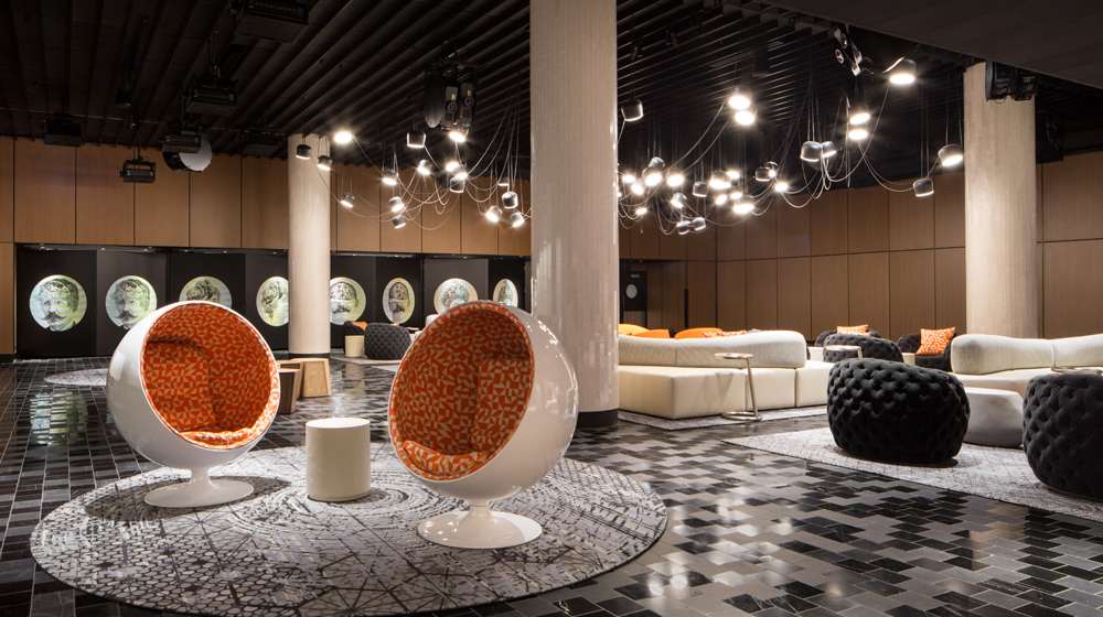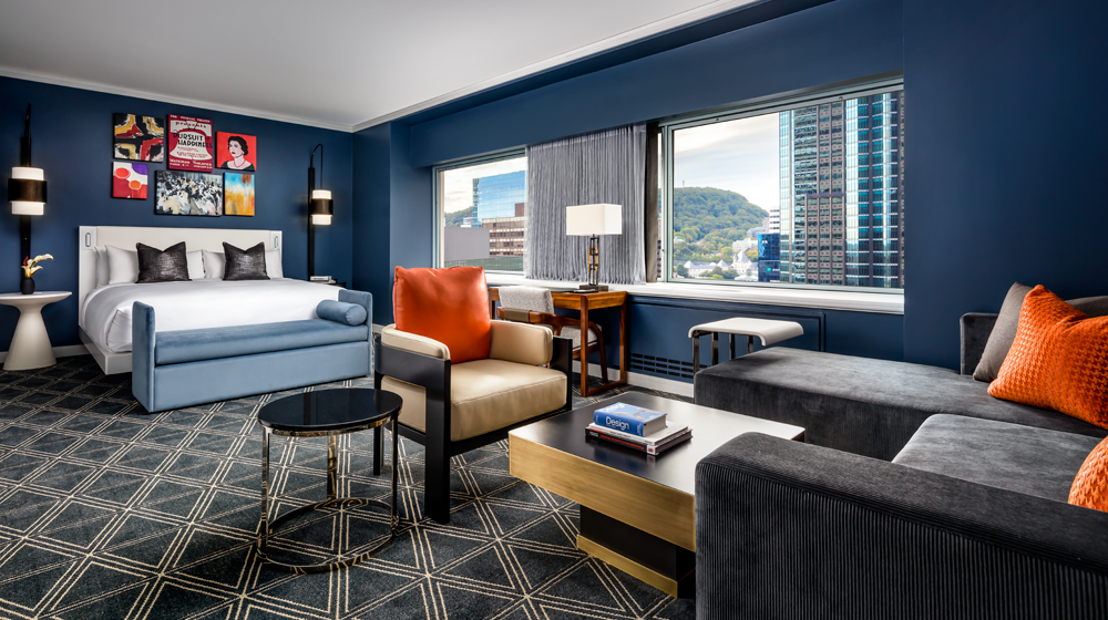Interestingly, management has converted the third-floor bedrooms to CoLab 3: a collection of small-size meeting rooms. Each one is unique; these rooms have such names as Ping (yes, that room’s carpet is grass-green and the communal meeting surface is a ping-pong table) and Swing (with two ceiling-hung swings semi-hidden in an alcove). The hotel’s GM, David Connor, who also heads Accor for Eastern Canada, reckons the new concept spaces more than compensate for losing bedroom revenue. He still has 952 rooms and suites to fill every night, which, with an average stay of 1.2 nights, means an awful lot of check-ins and check-outs every day. There is now, fortunately, a massive exaggerated-typeface artwork, Alexandre Berthiaume’s Typospective AI 2017, occupying the entire wall behind reception to look at, in case you have to wait 30 seconds. There are also special events in the lobby. As a sponsor of the men’s Coupe Rogers 2019 tennis tournament, the hotel not surprisingly had game-related displays, and rangy muscular-calved guys, in the lobby.