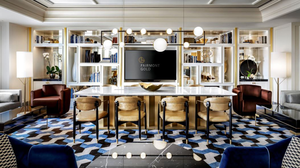 So many remember the mausoleum of the lobby, dominated by a floor-standing clock. Now, redesigned by Rockwell, a giant clock looks down on what is a brilliant and so-popular lobby bar, CLOCKWORK Champagne & Cocktails. Alexandra Champalimaud, whose Raffles Singapore renovation has also just opened, has done the completely new club lounge, taking up all of the 18th floor, and the new Fairmont Gold rooms bedrooms.