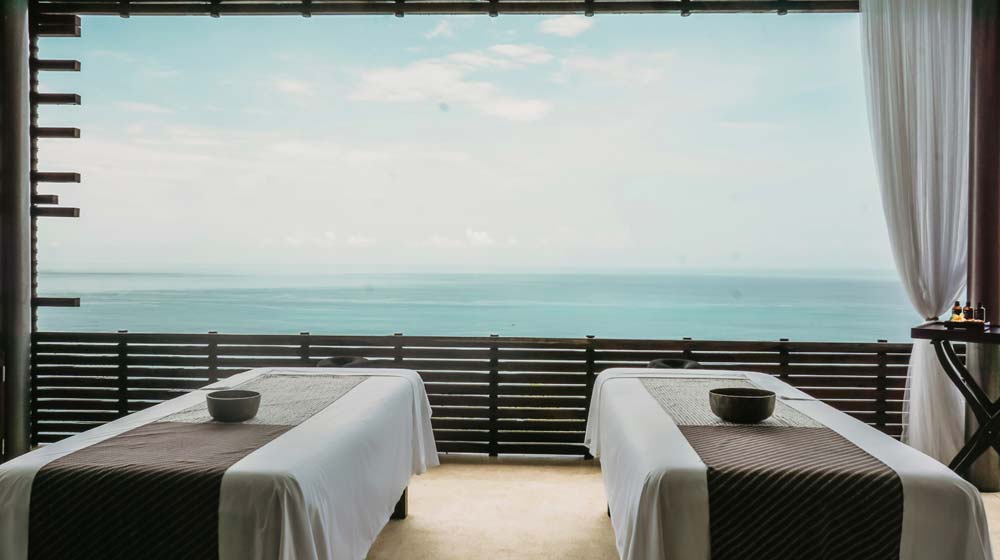 The unwinding experience begins from the moment guests walk through the path of lush vegetation along the cliff down towards the beach, soaking in the ocean’s soothing blue before the Spa Cabana comes magically into view.