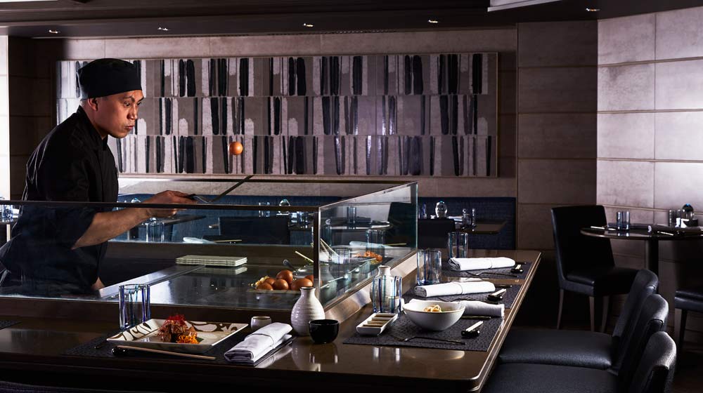 Reflecting a passion for tradition and performance, Kaiseki’s varied and balanced menus feature sushi, sashimi and other raw Asian-inspired dishes during the day with teppanyaki available exclusively for evening diners.