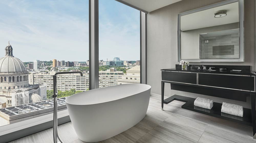 And then I moved to the bull’s eye, the oh-so-central Four Seasons Hotel One Dalton Street, Boston. This 215-room beauty, which opened May 2019, has a separate character from its mature sibling, the well-known and highly regarded Four Seasons Boston, which borders Boston Common. This baby, so new that the main bar had yet to be opened when I was there, is three minutes by car or Uber from the Boston Museum of Fine Arts, and it is within a few minutes’ walk of the city’s library and symphony, and Back Bay station for the excellent Amtrak services south to New York and on to Washington DC.