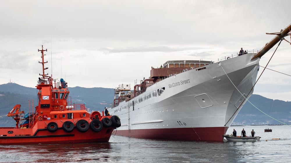 Sea Cloud Spirit is being fitted with dual diesel-electric drives which offer a low-sulphur marine diesel.