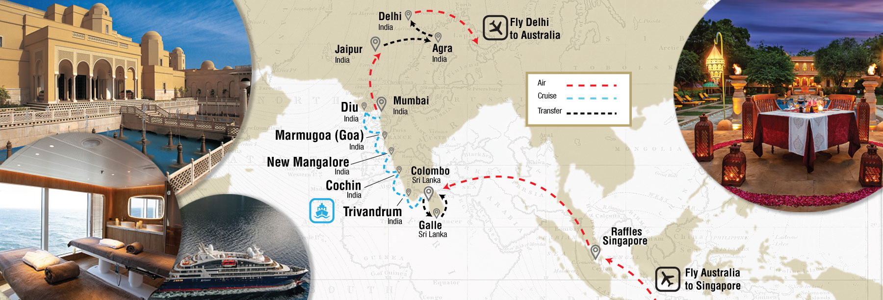 Latitude 33 has released its 22-night Raffles, Tea Plantations and Golden Triangle tour, taking 20 guests through some of the world’s most exotic destinations, including Singapore, Sri Lanka and India. Commencing on 3 January 2021, the itinerary incorporates a stay at Singapore’s iconic Raffles Hotel followed by four nights exploring Sri Lanka’s Galle and Colombo, an eight-night cruise on board Ponant’s Le Laperouse from Colombo to Mumbai, and finishes with a tour of India’s famed Golden Triangle staying exclusively at Oberoi Hotels.