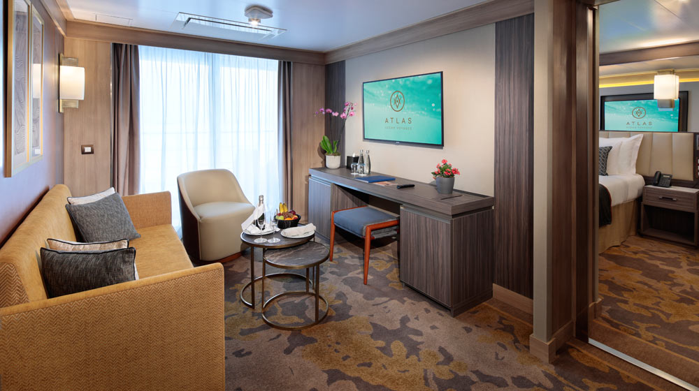 Atlas Ocean Voyages, up until recently branded Mystic Cruises USA, has offered a preview of the suites and staterooms that will be offered aboard World Navigator when she launches in 2021. The ship will comprise 98 deluxe suites and staterooms, all outward facing and most fitted with a private veranda.