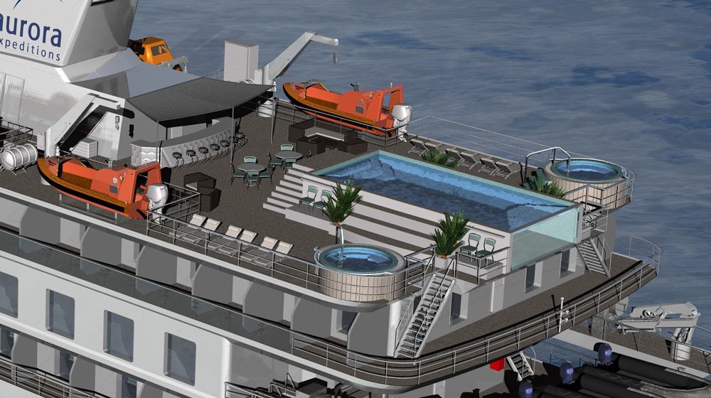 The 126-passenger ship will be the second in the fleet to sail with the patented Ulstein X-Bow, which cuts through the swell, minimising vibrations and disturbances, and makes quicker transits through waves.As well as improving comfort at sea the inverted Ulstein X-Bow offers an enhanced viewing experience by bringing passengers much closer to the immediate environment than that which can be achieved on ships with a traditional, bulbous shaped bow. Aurora Expeditions’ ship, Greg Mortimer, was the first passenger ship to incorporate this innovative marine technology.