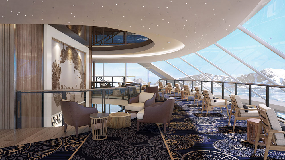 Straight bows, longer hulls and state-of-the-art fin stabilisers will allow the ships to glide over the waves for the calmest possible journey; ice-strengthened Polar Class 6 hulls will provide the safest way to explore and U-tank stabilisers will decrease rolling by up to 50% when the ships are stationary.