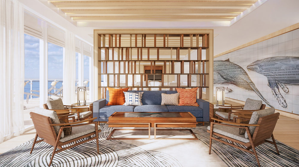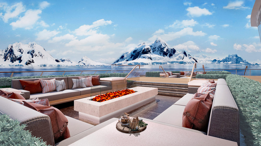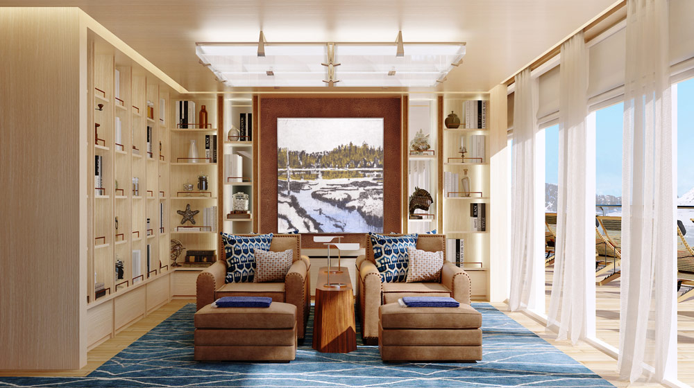 Aquavit Terrace & Pools: Located at the stern and featuring a retractable glass dome, this indoor-outdoor heated sanctuary will allow guests to be surrounded by their destination as they swim and lounge in three different temperature-controlled pools, including an ‘inside-out’ swimming experience.