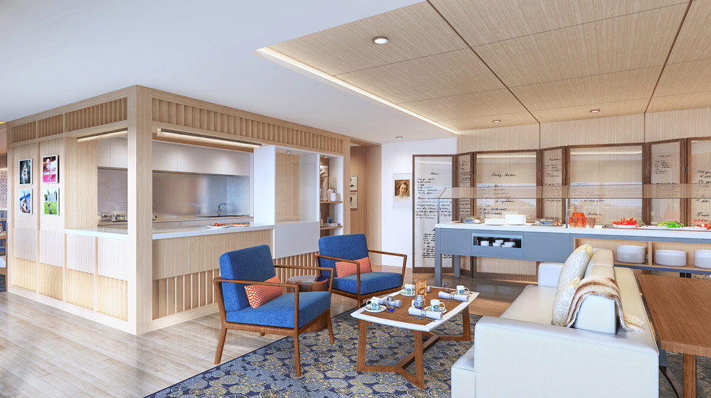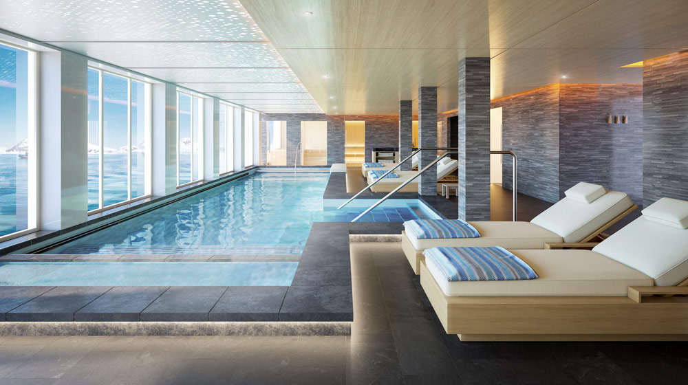 The Nordic Spa & Fitness Center: The Nordic Spa on board is designed with the holistic wellness philosophy of Scandinavia in mind – with a thermal suite that features a Sauna, Snow Grotto and chaise lounges, as well as a warm hydrotherapy pool and badestamp (hot tub), surrounded by floor-to-ceiling windows. A state-of-the-art Fitness Center will also provide the latest equipment and workout gear.