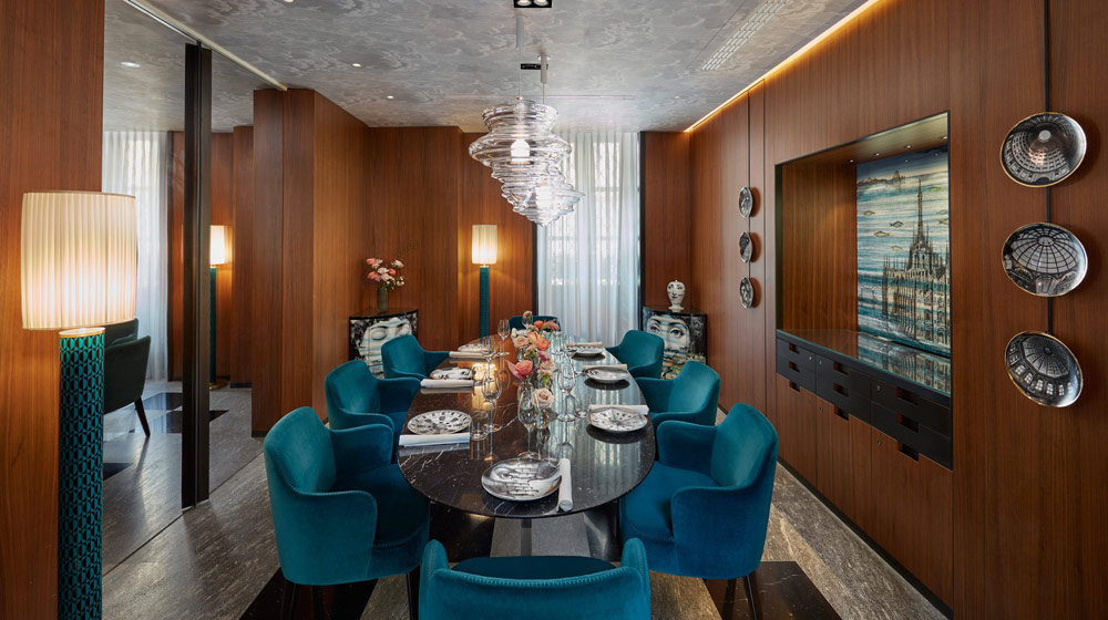 - A three-course dinner for two people in the privacy of the Fornasetti Suite or at Two-Michelin-starred Seta Restaurant. Parties of six or more can dine in the Duomo Private Dining Room